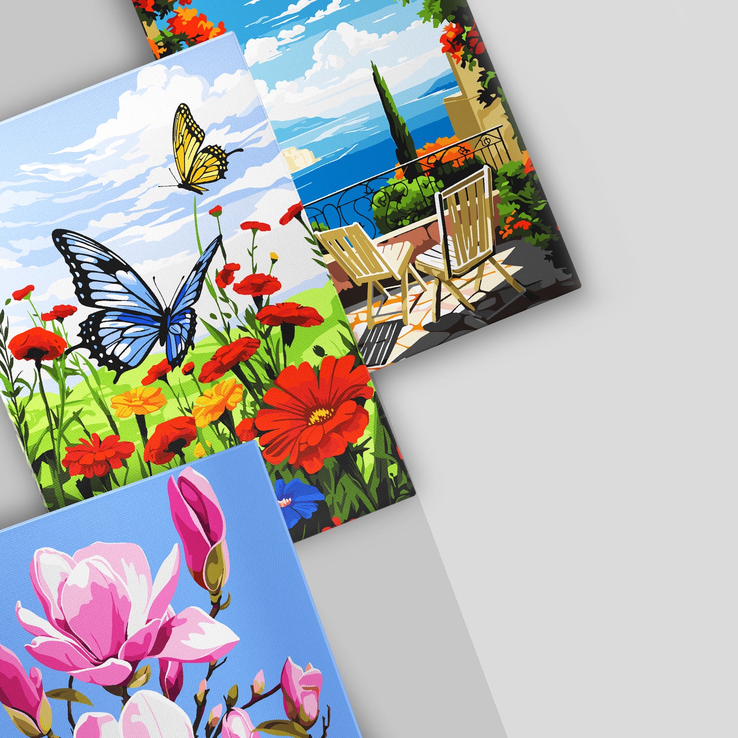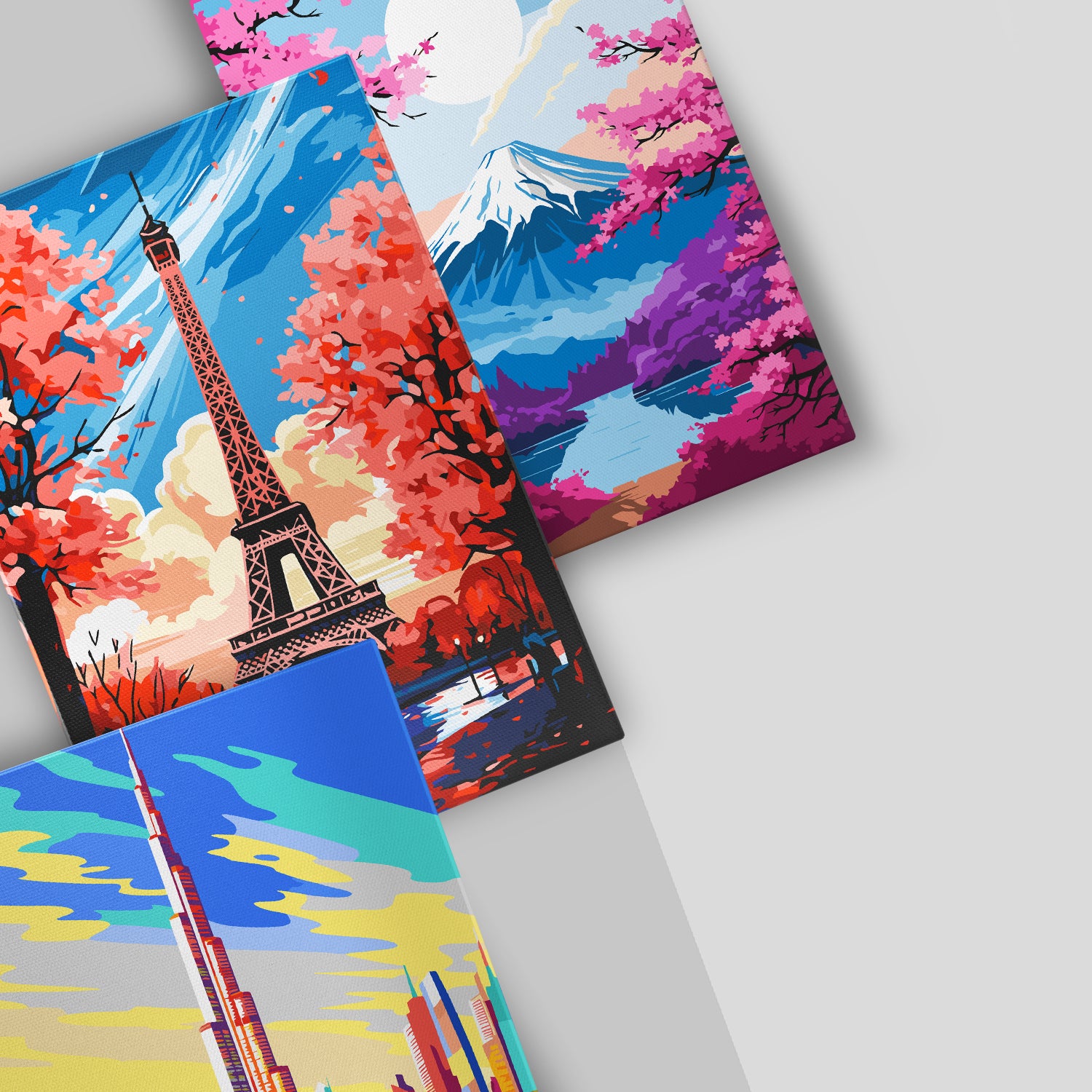 تتضمن مجموعة طلاء القماش بالأرقام uPaint قماشًا به مناطق مرقمة، وورقة مرجعية بحجم A3، وأكواب طلاء أكريليك مرقمة، ومجموعة من ثلاث فرش بأحجام مختلفة، وإطار اختياري.